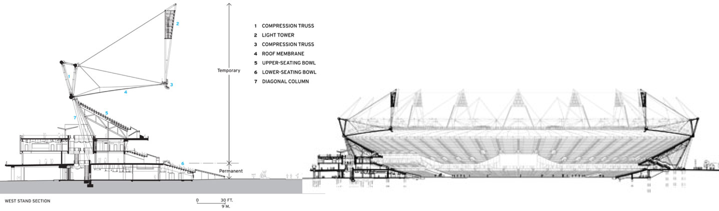 All of the eighty venues of the 2012 Olympics have been planned for day eighteen when the competition is over and the legacy of the games begins. With an eye toward economy and sustainability the Olympic organizing committee and master planning firms modeled the 2012 Olympics after the World’s Fairs of the nineteenth century which built mainly temporary venues. For instance London’s Olympic stadium is built for 80,000 spectators during the games and will be downsized to a 25,000 seat arena and leased to one of UK’s soccer teams. With stewardship and sustainability in mind Populous designed the arena with 11,000 tons of steel whereas the Bird’s Nest was constructed with 111,000 tons of structural steel-neither light nor flexible. The Basketball venue, designed by Wilkinson Eyre & KSS Design Group, is constructed of white recycled PVC panels, will be disassembled after the games and reused by the Olympic Committee possibly as a venue in the 2016 Rio Games. This makes sense since the Brits don’t play basketball in the numbers required to justify the support and upkeep of the facility. While temporary structures are not necessarily the money savers most would expect costing up to 85% of the cost of permanent construction, the savings really comes from the flexibility of the venues themselves and the ability to re-plan the spaces around the venues which can respond to changing market conditions and future site adaptability.