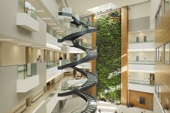 Whether called Green Walls, Vertical Gardens, or Biowalls these vegetative elements bring nature to interior environments in new and innovative ways. From science buildings on university campuses to retail shopping centers these living walls become tapestry like by creating varying patterns, textures and colors on a monumental scale. Because they are vertical and wall mounted they integrate into the architecture and not added as afterthoughts as planters and pots so often are.
